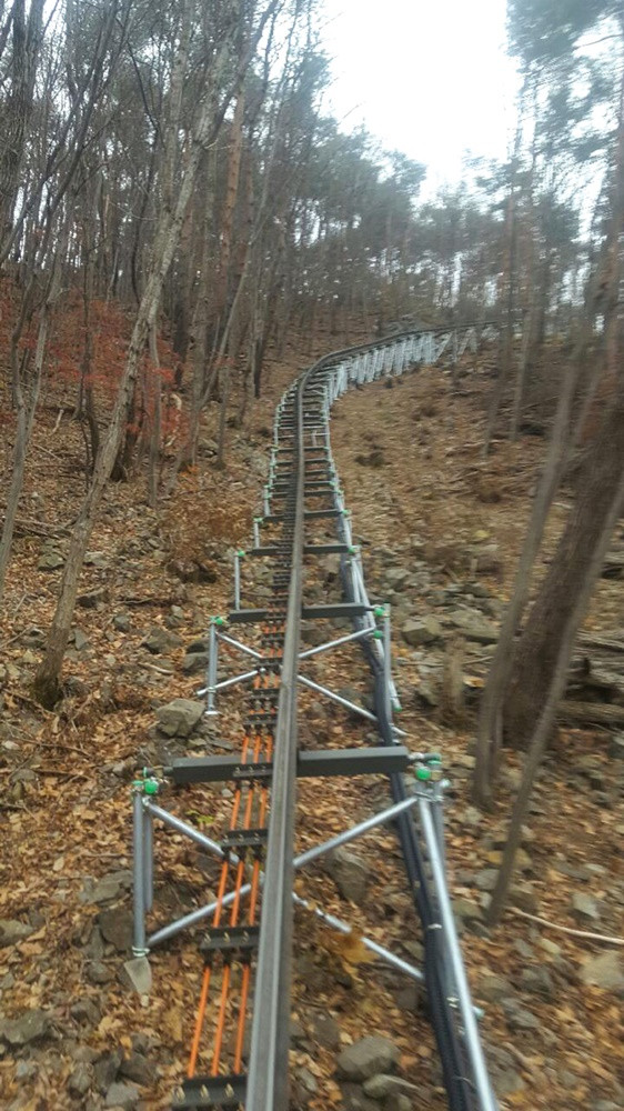 ↑↑ 산 정상을 향해 길게 늘어선 모노레일.
