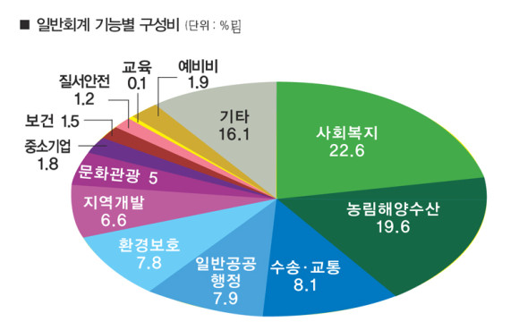 복지22.6% 농림19.6% 교통8.1% 순