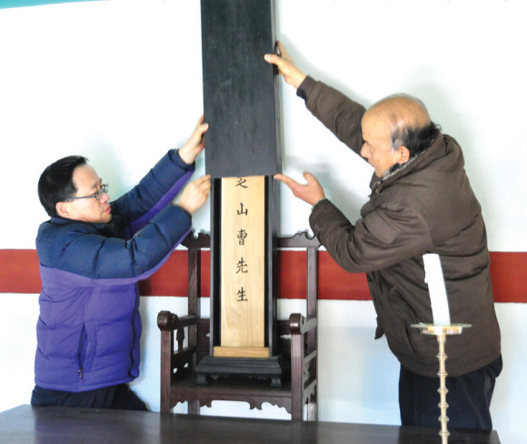 ↑↑ 조원호 총무와 조 순 교수가 위패를 보여주고 있다.