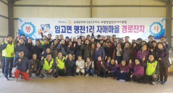 국제로타리 3630지구 포항 영일만로타리클럽(회장 이승복) 회원들은 지난 25일 자매결연을 한 임고면 평천1리을 방문하고 마을경로잔치를 열었다.
