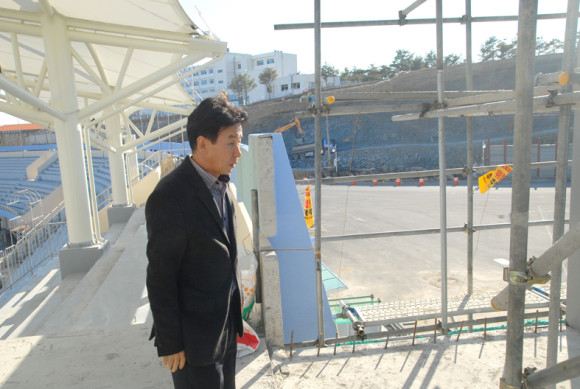 요즘 손동렬 과장은 완벽한 대회준비를 위해 바쁜 나날들을 보내고 있다. 특히 영천시민운동장을 새롭게 조성하는데 손 과장은 모든 열정을 불태우고 있다. 먼저 유해성분에 대한 인식을 없애기 위해 시민운동장 우레탄 전체를 교체하고 있으며 불편했던 관람객 의자도 교체하고 있다. 여기다 장애인 편의시설인 엘리베이터와 관람대를 운동장에 설치하고 있다. 뿐만 아니라 금호체육관 지붕공사 등 21개 종목이 개최되는 체육관과 체육시설 전부 점검하고 있기 때문에 사무실에 앉아있을 시간이 없을 정도다.