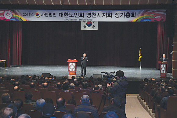대한노인회 영천시지회(지회장 성낙균)은 지난 2월28일 영천시민회관에서 각 읍면동 분회장, 경로당 회장 등 대의원 500여명과 김영석 영천시장 등 기관단체장이 참석한 가운데 영천시지회 대의원 정기총회를 개최했다(사진).