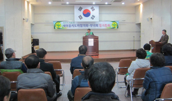 이날 총회에는 박봉규 새마을협의회장, 이춘자 부녀회장, 손경호 지도자협의회장, 한혜련·김수용 도의원, 권호락 정기택 허순애 시의원을 비롯한 기관단체장과 새마을 가족 60여명이 참석했다. 2016년도 결산과 2017년도 사업계획 및 5월에 있을 격년제로 치러질 면내 큰 행사인 어르신들을 위한 경로잔치 행사 개최 등을 협의했다.