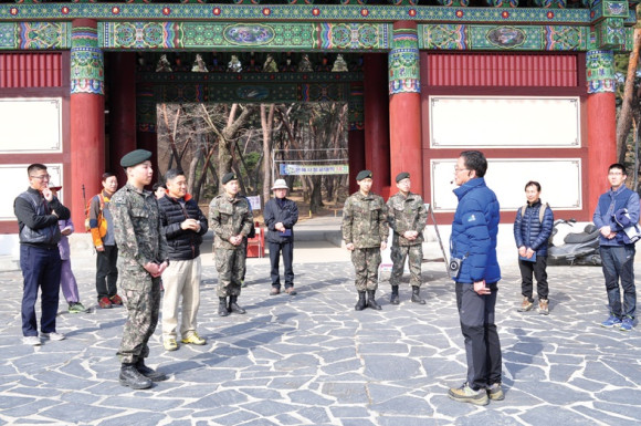 지난 12일 오전 대한불교조계종 10교구 본사인 은해사에서 숲해설 프로그램이 진행됐다. ‘숲, 아름다운 동행 협동조합’이 주관한 행사로 ‘은빛바다 숲 이야기’라는 주제의 프로그램이며 은해사를 방문한 군인가족과 현역군인, 숲해설사 조합회원 등 20여 명이 참가했다.