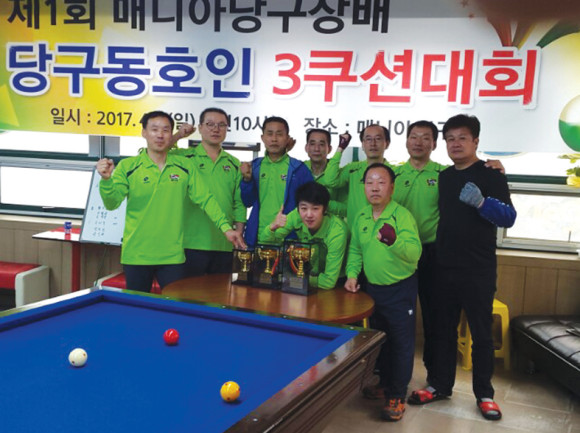 | | | ⓒ 영천시민뉴스 | | 당구동호인들의 3쿠션 당구대회가 열렸다. 제1회 매니아당구장배 3쿠션 당구대회가 지난 9일 오전 야사동 매니아 당구장에서 열렸다. 경기 방식은 3명의 선수가 1조(4개조), 각 조별 23점을 먼저 획득하는 선수 2명이 예선을 통과하는 방식으로 진행됐다. 대회 결과는 우승은 김동업 선수(야사동) 2위는 권상우 선수(야사동)가 차지, 상장과 트로피를 수상했다.