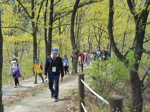 영천초등학교 총동창회(회장 박종운 58회) 춘계 산행대회가 지난 16일 오전 완산동 그린환경센터 야외 무대에서 열렸다. 52회 선배에서 78회 후배까지 참석한 이번 산행대회에는 금강산성을 한 바퀴(3km) 돌아오는 코스로 구간 구간 보물을 숨겨두고 보물찾기 프로그램도 함께 했다. 오전에는 박종운 회장과 이만희 국회의원(64회)이 각 기수별 동문들과 함께 사진촬영 이벤트도 진행, 많은 동문들이 이 의원과 사진 촬영하면서 기뻐했다. 오후엔 식사와 기수별 장기자랑, 경품 추첨의 시간을 가지고 즐거운 하루를 보냈다.