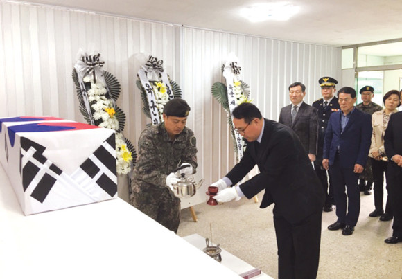 동부동 기관단체장협의회는 지난 20일 회원 20여명이 참석한 가운데 육군 제50사단 122연대 4대대(오미동)를 방문해 6·25 전사자 유해발굴 분향소를 참배했다. 동부동방위협의회의 제안으로 진행된 이날 참배는 오전 11시 4대대에 마련된 분향소에서 6·25 전사자들의 넋을 위로하는 참배를 실시하고 동부동방위협의회에서 준비한 세탁기를 4대대에 기증했다.