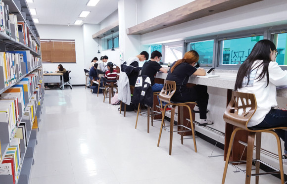 도체에도 불구 도서관에서 책보는 학생들
