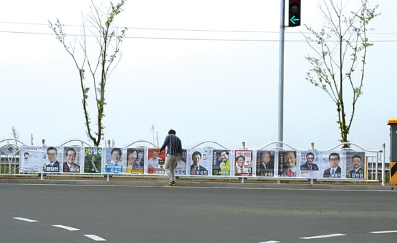 대통령 후보 선거벽보가 지난 21일부터 각읍면동에 모두 부착됐다. 15명의 후보 벽보가 너무 길게 있어 유권자들도 약력 등 간단 사항을 모두 살펴보려면 많은 시간이 필요할 것 같다.