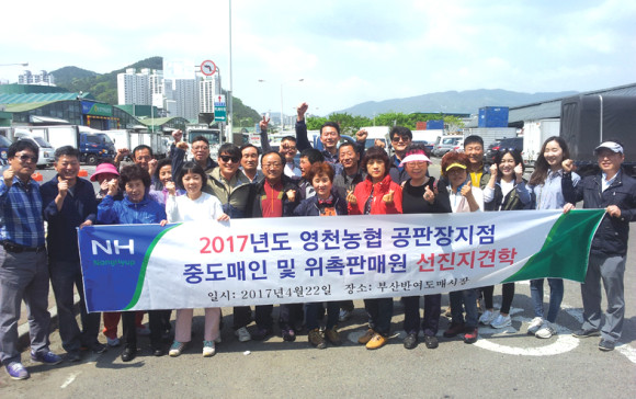 영천농협 공판장지점(지점장 김성호)은 지난 4월22일 휴일을 이용하여 직원 및 중도매인, 위촉판매인 등 30명이 부산광역시 해운대구 반여동 반여농산물 공판장을 견학했다(사진).