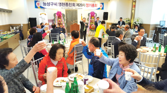 능성구씨 영천시 종친회(회장 구종상) 제29차 정기총회가 지난 29일 오전 SD웨딩컨벤션에서 구본찬 능성구씨 대구경북회장 및 회원과 회원 가족 등 1백여 명이 참석한 가운데 열렸다.
