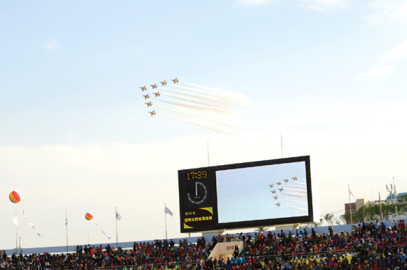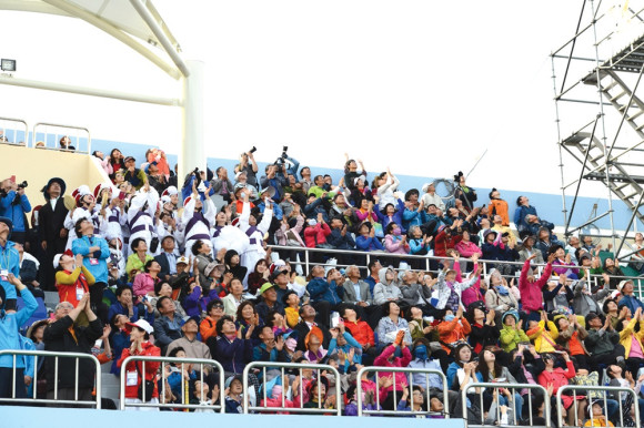 | | | ↑↑ 도민체전 관객들이 블랙이글스를 보며 환호하고 있다. | | ⓒ 영천시민뉴스 | |