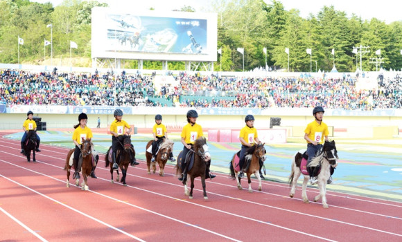 | | | ↑↑ 식전행사로 지역의 초등학생들이 미니어처 말경주에 참여해 힘차게 달리고 있다. | | ⓒ 영천시민뉴스 | |