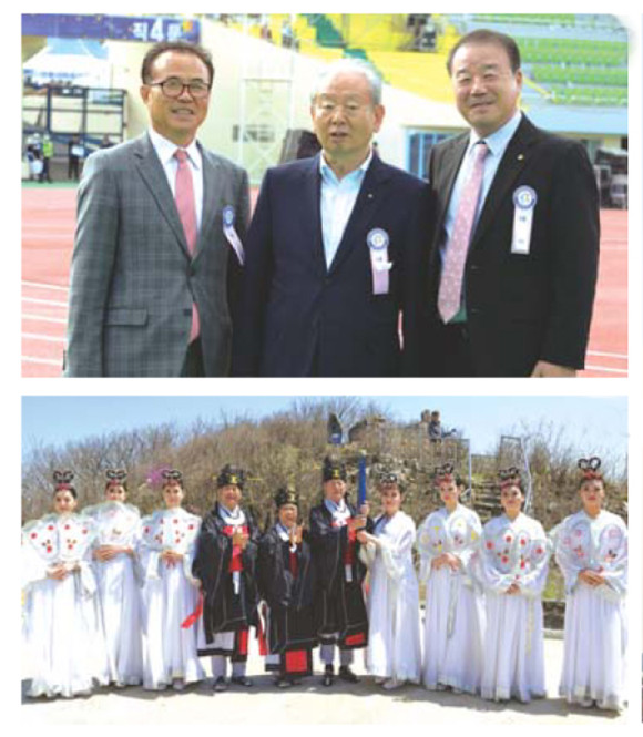 | | ↑↑ 최경용 경북육상연맹장(맨 우측)과 원로 체육인들이 개회식에 참여했다(위).