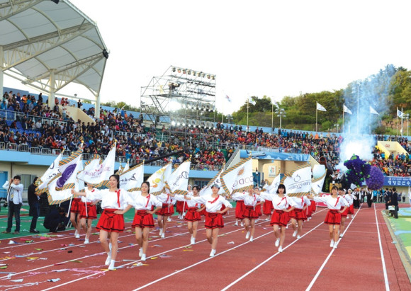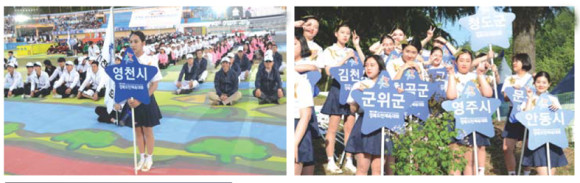 | | | ↑↑ 영천시선수단의 모습(좌). 피켓걸로 봉사하는 영천여고 학생들. | | ⓒ 영천시민뉴스 | |