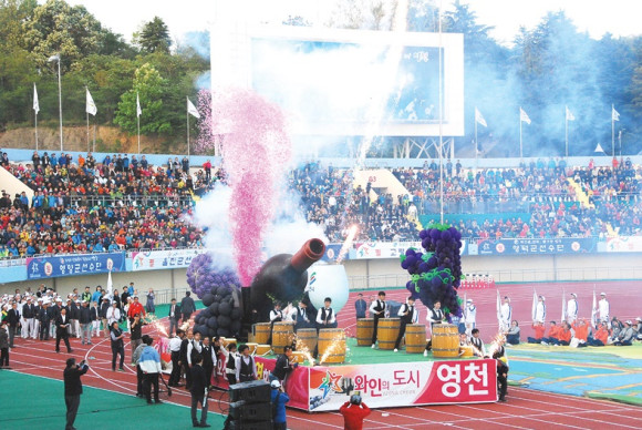 | | | ↑↑ 화포에서 발사된 신기전이 성화를 점화시키는 모습. | | ⓒ 영천시민뉴스 | |