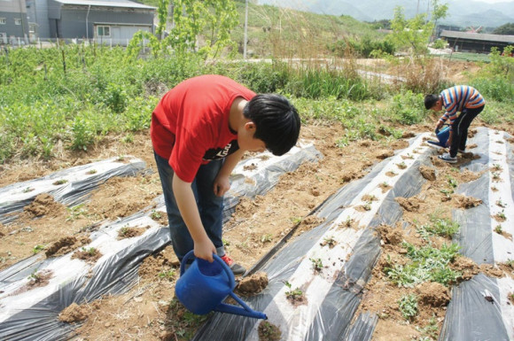 청통초등학교 학생들은 해마다 고추, 방울토마토, 상추, 고구마, 땅콩, 호박 등 다양한 작물을 심고 재배하며 수확의 보람과 즐거움을 경험하고 있다. 올해는 오이와 가지, 치커리까지 다양한 작물을 녹색 체험장에 심었다. 식물가꾸기에 참여한 학생들은 “건강하게 잘 자라라. 많이많이 열려서 다 같이 나눠 먹게.”라고 말했다.