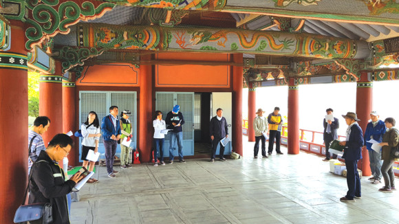 이날 탐방은 오전 9시경 조양각에서 집결, 향토사연구회의 이원조 신임회장이 지역의 대표문화유산인 조양각(경상북도 유형문화재 제144호)에 대한 해설을 시작으로 출발했다. 이어 문내동 당수나무와 읍성의 동벽을 거슬러 올라가 중앙초등학교 내에 세워진 ‘읍성비’를 찾아보았다.