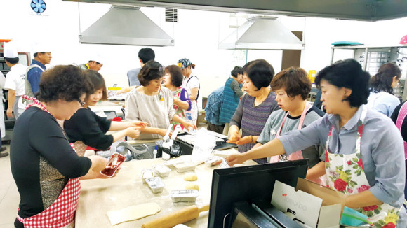 지난 25일 농업기술센터 실습실에서 ‘우리쌀 빵만들기 아카데미’ 참가자들이 열심히 빵을 만들고 있다. 우리쌀 활용을 통해 쌀소비를 촉진하고자 처음 개설된 강좌로 시민들의 반응이 뜨겁고 열정적으로 배우고 있는 모습이 눈길을 끈다.