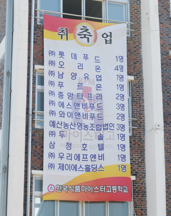 한국식품마이스터고 관계자는 “학교운동장의 우레탄을 철거하는 작업과 정문의 진입로 공사를 진행하고 있다. 식품관련 마이스터고는 우리학교가 전국 최초이다.”며 “취재에 많은 도움을 주지 못해 미안할 따름이다.”고 말했다.