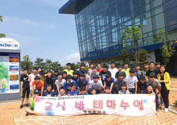 영동중학교(교장 임상현)는 지난 3일 경남 사천에서 교육복지우선지원사업 문화소외예방프로그램으로 진행되는 교실 밖 테마 수업 ‘항공우주과학관 및 박물관 체험’을 진행했다.