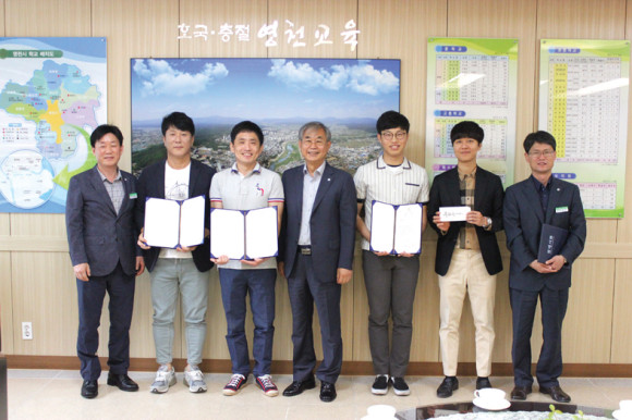 ↑↑ 미소사진 콘테스트 수상자들이 유병수 교육장(가운데)과 기념촬영을 했다.