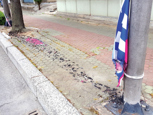 지난 6일 아침 일찍 충혼탑 가는 도로 입구(카모텔) 건너편에 걸린 현수막이 불에 탔다. 흔적이 없어질 정도의 현수막을 인근 운동 나온 주민들이 발견, 제보했다. 주민들은 “운동 나가 다 보니 이것을 발견했다. 누가 왜 그랬는지는 모르겠다.”고 했다.
