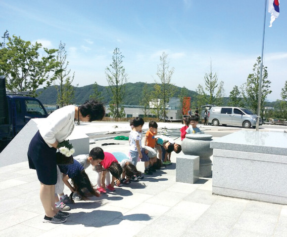 아름어린이집 원생 10여명은 지난 5일 충혼탑을 참배하고 호국영령들의 고귀한 뜻을 기리고 넋을 위로하는 큰절(배꼽인사)을 하고 갔다.