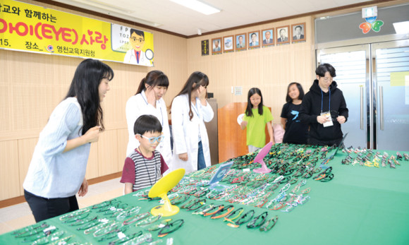 영천교육지원청(교육장 유병수)과 성덕대학교(총장 윤지현)는 지난 14, 15일 양일간 교육지원청 2층 소회의실에서 교육복지우선지원사업 일환으로 학생들의 소중한 눈 건강관리를 위해 ‘아이(EYE)사랑’ 사업을 펼쳤다.