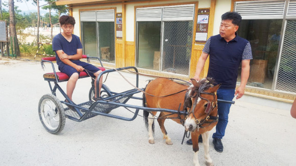 | | | ↑↑ 미니홀스가 끄는 하이브리드 마차 2인승. 4인승에는 전기동력장치가 설치돼 말에 부담을 주지 않는다. | | ⓒ 영천시민뉴스 | | 이밖에 말과 승마인을 위한 우수한 시설뿐만 아니라 가족단위 방문객들을 위한 조류체험장, 미니홀스랜드, 생태터널, 쉼터, 당근먹이주기 체험장, 미니마찻길 조성 등 승마장-조련장 기능과 관광-레저 등이 결합된 새로운 융·복합단지다.