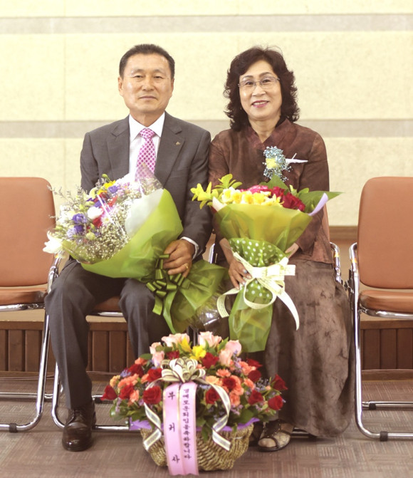 | | | ↑↑ 김윤섭 부면장과 부인 이영화 씨. | | ⓒ 영천시민뉴스 | | 36년간의 공직생활을 마무리 하고 명예로운 정년퇴직한 김윤섭 청통면 부면장이 지난 26일 청통면민복지관 2층에서 가족 친지 및 많은 지인들이 참석한 가운데 퇴임식을 가졌다. 김윤섭 부면장은 1957년 3월 화북면에서 출생 산동종합고등학교를 졸업하고 1981년 영덕군농촌지도소 국가직 공무원으로 근무를 시작하여 1983년 월성군 안강읍사무소로 전근했으며 1988년 북안면사무소 근무를 인연으로 영천시 공무원으로 몸담게 되었다.