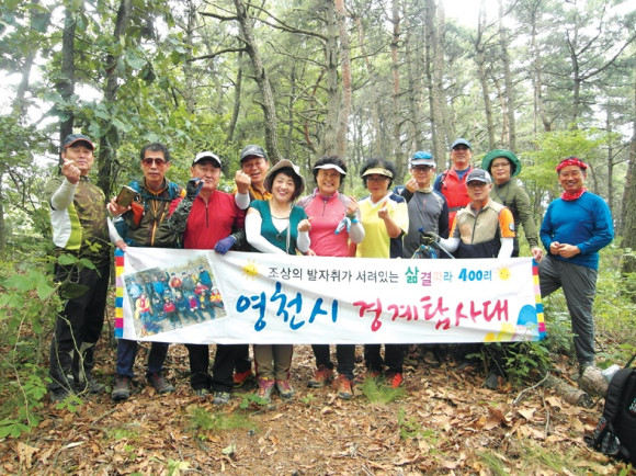 안전체조 전문가인 윤우록 대원(임고면 예비군중대장)이 탐사 대원들에 안전체조를 지도한 후 출발했다.