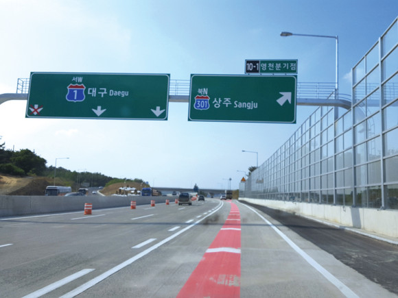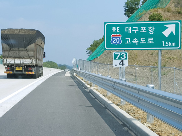 | | | ↑↑ 상주~영천고속도로 하행선에서 대구~포항 고속도로 진입 안내판. | | ⓒ 영천시민뉴스 | |