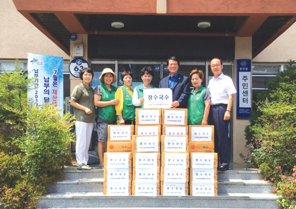 동부동 새마을부녀회(회장 최분순)는 지난 12일 초복을 맞이하여 관내 경로당 어르신들이 건강한 여름을 보낼 수 있도록 기원하는 뜻에서 국수32박스(100만원 상당)를 관내 경로당 35개소에 전달했다.