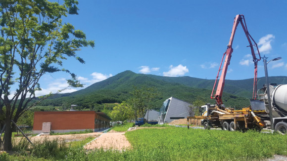 현재 펜션동과 본관동은 준공을 마친 상태이며 내·외부 상징조형물 및 식재보강공사 등 주변 경관 마무리 작업이 진행 중이다.