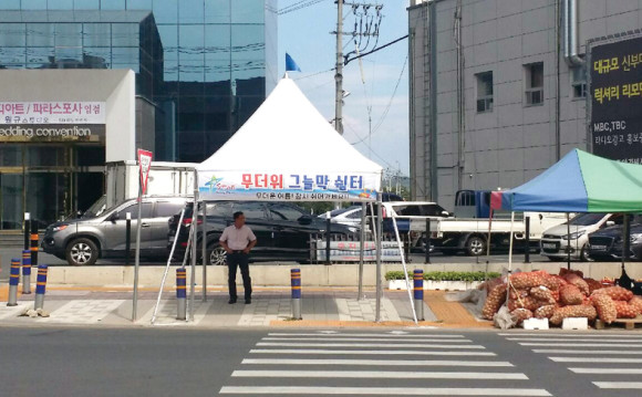 | | | ⓒ 영천시민뉴스 | | 무더위가 길어지고 갑작스런 폭우로 봉변을 당하는 경우가 종종 있다. 이런 것을 대비해 영천시는 지난 7일 시청오거리, 서문육거리, 동부동 사거리 등 주요 횡단보도 등 12곳에 폭염대비용 그늘막쉼터를 설치했다. 이 쉼터는 갑자기 내리는 소나기도 피할 수 있다.
