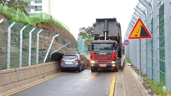 삼산아파트 옆 절개지 무너져