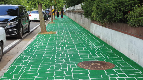 | | | ⓒ 영천시민뉴스 | | 도남공단내 이색적인 인도가 등장했다. 걷기에도 무난하고 시각적으로 세련됐다고 한다. 자세히 보면 아스콘 종류를 깔고 특수 페인트로 무늬를 입혔다. 바닥재의 재료와 디자인이 날로 발전하는 것 같으나 실용성은 두고 봐야 한다.