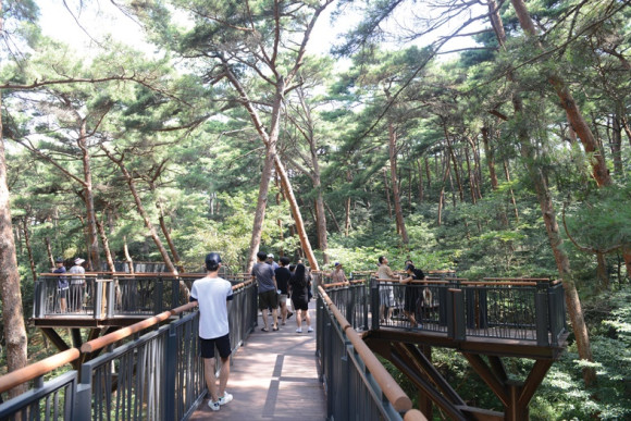 등산로에서 만난 관광객은 “무더위에 등산로를 걷지 않으려고 했는데 큰일 날 뻔 했다. 이렇게 아름답고 특색있는 등산로는 처음이다. 소나무 때문인지 덥다는 생각이 안 든다.”며 “이것 하나만으로도 충분히 자연휴양림을 홍보할 수 있을 것이다.”고 설명했다.