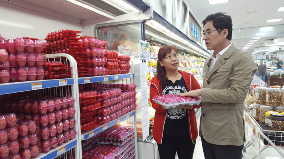 | | | ↑↑ 김장주 행정부지사가 계란유통 현장을 방문했다. | | ⓒ 영천시민뉴스 | | 경상북도는 살충제 계란 전수 검사 결과 부적합 판정된 6개 농장 계란 40여만개에 대하여 신속히 전량 회수 및 폐기 완료 하였으며 향후 유통되는 계란의 안전성 확보를 위하여 계란 안전 관리 종합대책을 마련했다고 밝혔다.
