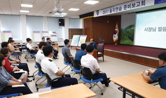 영천경찰서(서장 심덕보)는 지난 17일 경찰서 3층 대회의실에서 각 과·계장, 을지연습 참가자 등 60여명이 참석한 가운데 2017년 을지연습 준비보고회를 개최했다. 이번 준비보고회는 21일부터 24일까지 실시되는 2017년 을지연습의 개요, 준비사항, 각 기능별 업무 등을 점검하고 성공적인 을지연습을 수행하기 위해 마련되었다. 심덕보 서장은 “북핵 도발 등 국내외 안보상황이 급변하는 만큼 형식적인 훈련을 탈피하여 훈련을 통한 보완점을 개선하는 등 실질적인 훈련이 될 수 있도록 전 직원의 적극적인 참여를 당부한다”고 말했다.