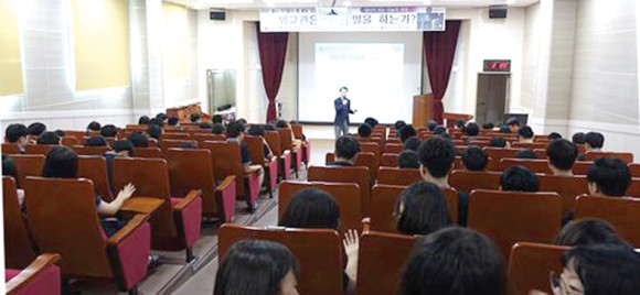 별빛중학교(교장 이원락)는 지난 8월16일 교내 시청각실에서 전교생을 대상으로 2017 자유학기 외교관 초청 진로특강을 실시했다(사진).