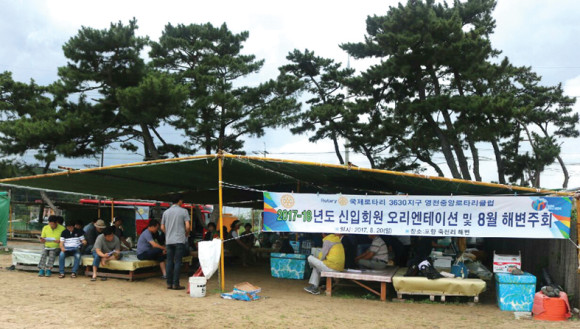 영천중앙로타리클럽(회장 기세록)은 지난 20일 포항시 죽천리 해변에서 2017년~18년 신입회원 오리엔테이션 및 8월 해변주회를 개최했다. 중앙로타리클럽 신입회원은 올해 6명으로 로타리 6개 클럽중에 가장 많은 신입회원을 확보했다.