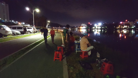 금호강 둔치 밤낚시 즐기는 시민들이 점점 늘어나고 있다. 매년 이맘때면 낚시를 즐기는 시민들이 둔치를 찾아 낚시하고 있는데, 둔치 낚시는 금지하고 있으나 낚시인들은 아랑곳하지 않고 있다. 낚시인들은 “이제는 우리도 낚시 후 자기 자리는 모두 치우는 성숙한 정신이 있다. 개를 데리고 둔치 나오는 사람보다 낫다.”면서 “행정에서도 낚시 시즌을 기해 낚시허용을 했으면 한다.”고 이구동성.
