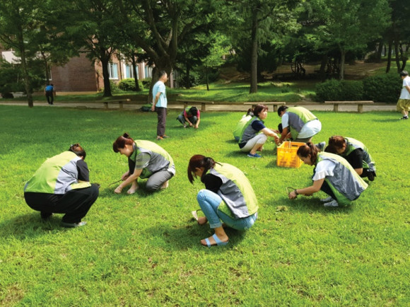 | | | ↑↑ 봉사단원들이 잔디를 손질하고 있다. | | ⓒ 영천시민뉴스 | | 시민운동장 입구, 구 여성복지회관 자리에 위치한 영천시 다문화센터(센터장 조상임)에는 다문화 가족들이 항상 붐비고 배움을 실천하는 모습을 볼 수 있어 사람 사는 맛을 느낄 수 있다. 여기에 나오는 사람들로 구성된 봉사단체 또한 열정적인 모습을 보여주고 있어 다문화 가족들 스스로 자부심을 느끼고 있다고 하는데 영천시다문화센터 나눔봉사단(단장 권세안)이 바로 열정적인 봉사단체다.