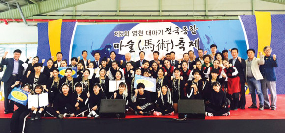 | | | ↑↑ 전국종합마술축제 개막식 후 수상자들이 기념촬영을 하고 있다. | | ⓒ 영천시민뉴스 | | 영천시는 지난 15일부터 17일까지 영천운주산승마조련센터 특별행사장에서 ‘제5회 영천대마기 전국종합 마술축제’를 개최했다.