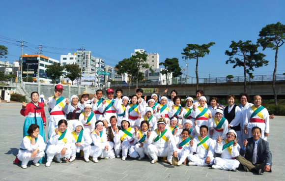 ↑↑ 명주농악보존회가 경북풍물대축제에 참가해 기념사진을 찍고 있다.