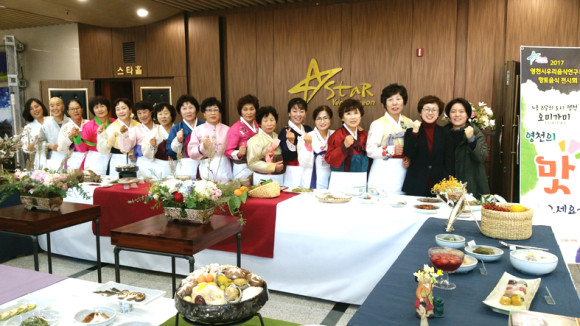 | | | ↑↑ 우리음식연구회원들이 행사에 앞서 기념촬영을 하고 있다. | | ⓒ 영천시민뉴스 | | 지난 26일 영천시민회관 로비에서 ‘2017 영천시우리음식연구회 향토음식전시회’가 성황리에 펼쳐졌다. 이날 음식전시회는 영천시우리음식연구회(회장 이명옥)가 영천의 맛을 홍보하고자 마련한 것으로 올해 지역특화식품개발교육 3개 과정을 통해 배운 솜씨를 마음껏 뽐내어 관람한 시민들을 매료시켰다.