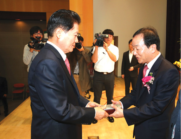 농협중앙회 영천시지부 최문섭 지부장(사진 우)이 농협중앙회로부터 ‘이달의 농협인상’을 수상했다