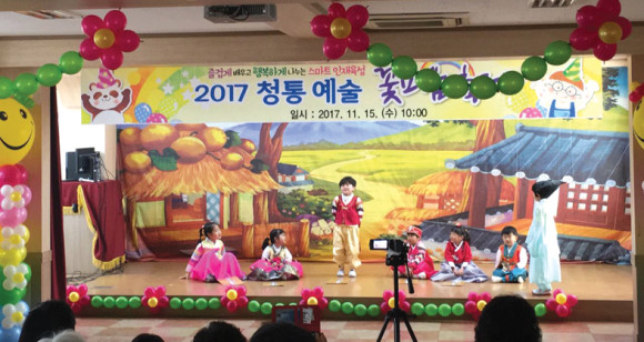 청통초등학교(교장 김은하)는 지난 15일 다목적실에서 2017학년도 학교에서 이루어진 모든 배움의 추수감사축제인 ‘2017 청통 예술 꽃피움 축제’를 열었다. 특색교육시책으로 이루어지는 예술꽃 방과후학교 활동을 통해 길게는 5년, 짧게는 1년간 연습한 악기연주를 비롯하여 문화예술강사 활용 무용교실에서 배운 전통 및 외국무용, 교내 UCC대회 수상작, 영천 JC 동요대회에서 은상을 수상한 중창 등 2017학년도 청통 교육을 한 눈에 선보이는 축제였다.